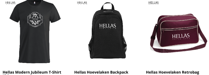 Hellas heeft een eigen kledinglijn. Bekijk de website Bee Visible, zoek op Hellas via de link https://bee-visible.com/